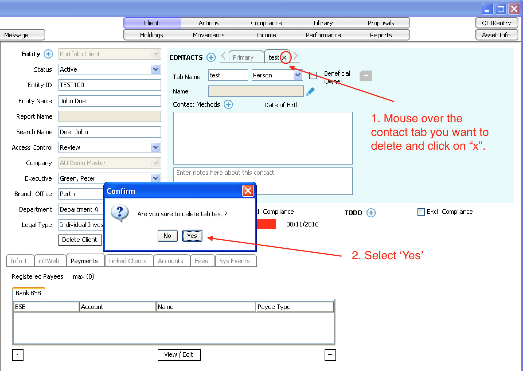 - Deleting Entities & Contacts Support Team 1 November 16, 2016 04:06 Updated Deleting an Entity Deleting a Contact Comments 0 comments Please sign in to leave a comment.