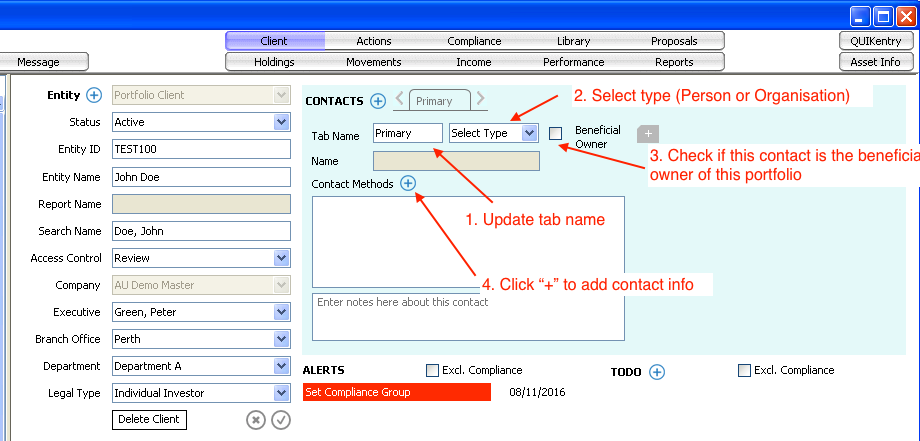 Client Type - you can define the entity type here (e.g. Company, Trust, Individual etc.)